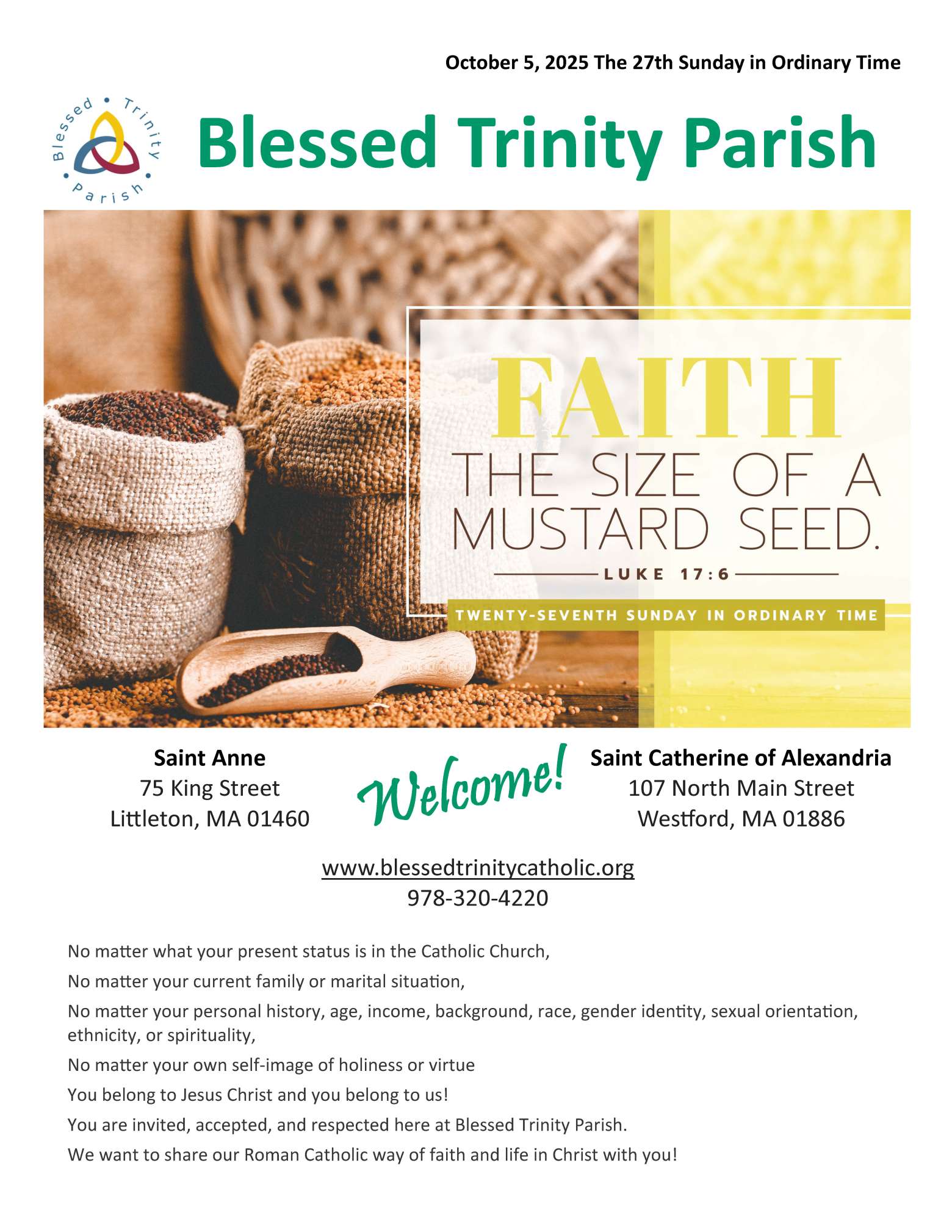 Sunday: 5:30 p.m. Mass - St Catherine Church