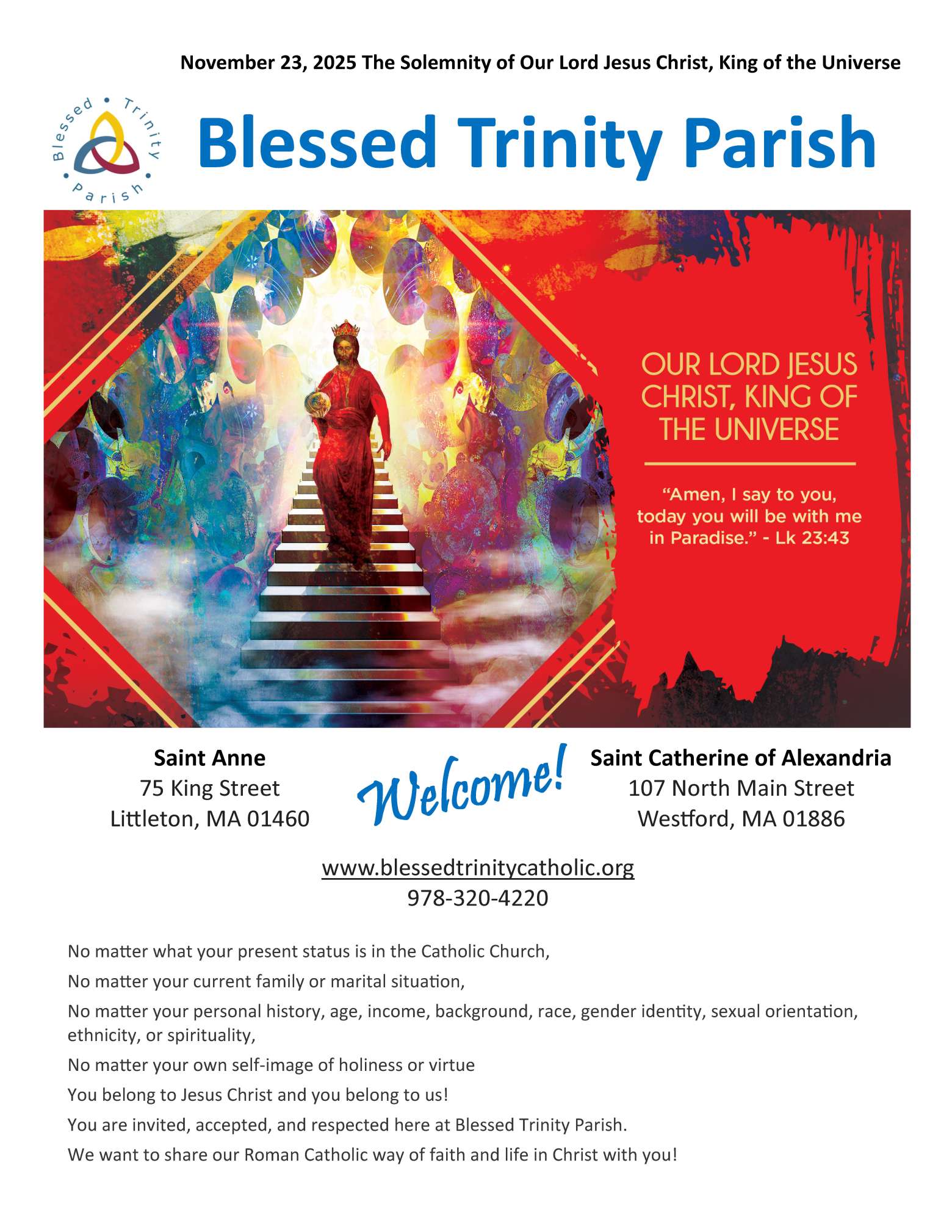 In our gospel, Jesus is still teaching from the cross showing us that as king, His reign is not about power or wealth; it is about love, mercy, and peace. He has given His life for us. This feast helps us grasp what real kingship means – to be ‘servant’ to one another – acknowledging my life is not about me; it is about serving Christ and others. And so, we pray, dear Jesus, give us the grace to direct others to you and be your servant. Amen.